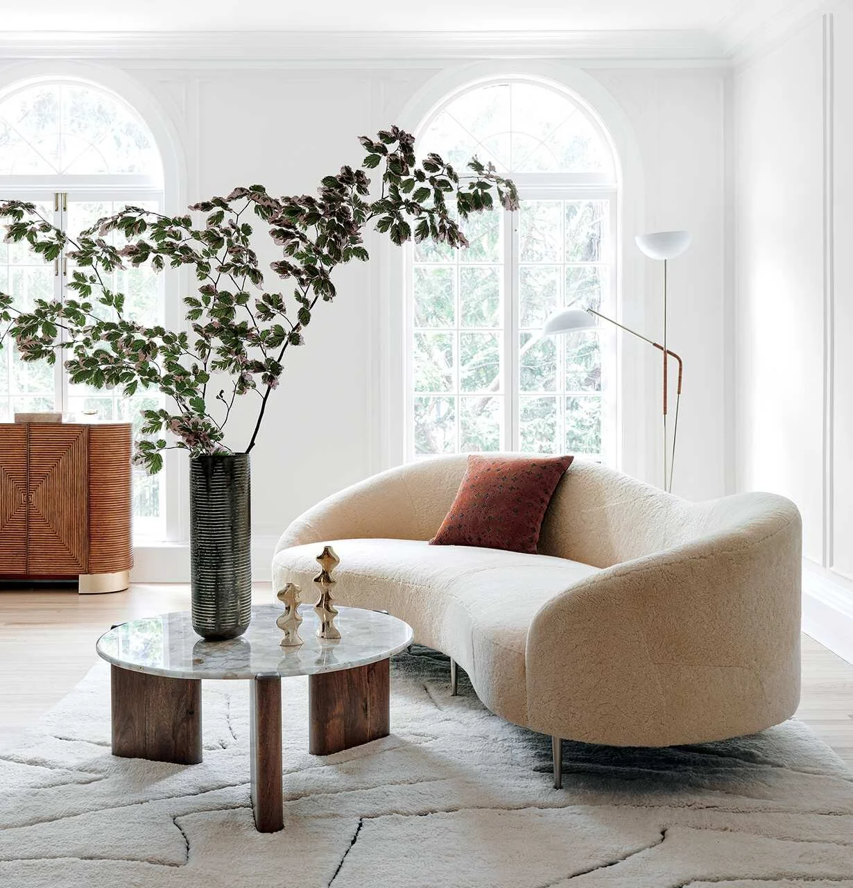 Today, I want to argue that the curved furniture trend caught us just at the right time. We’re stressed, the world is uncertain, and we’re spending a lot of time at home. People are putting more time and care into home improvement projects, and a calm and relaxing home has become a priority for many.