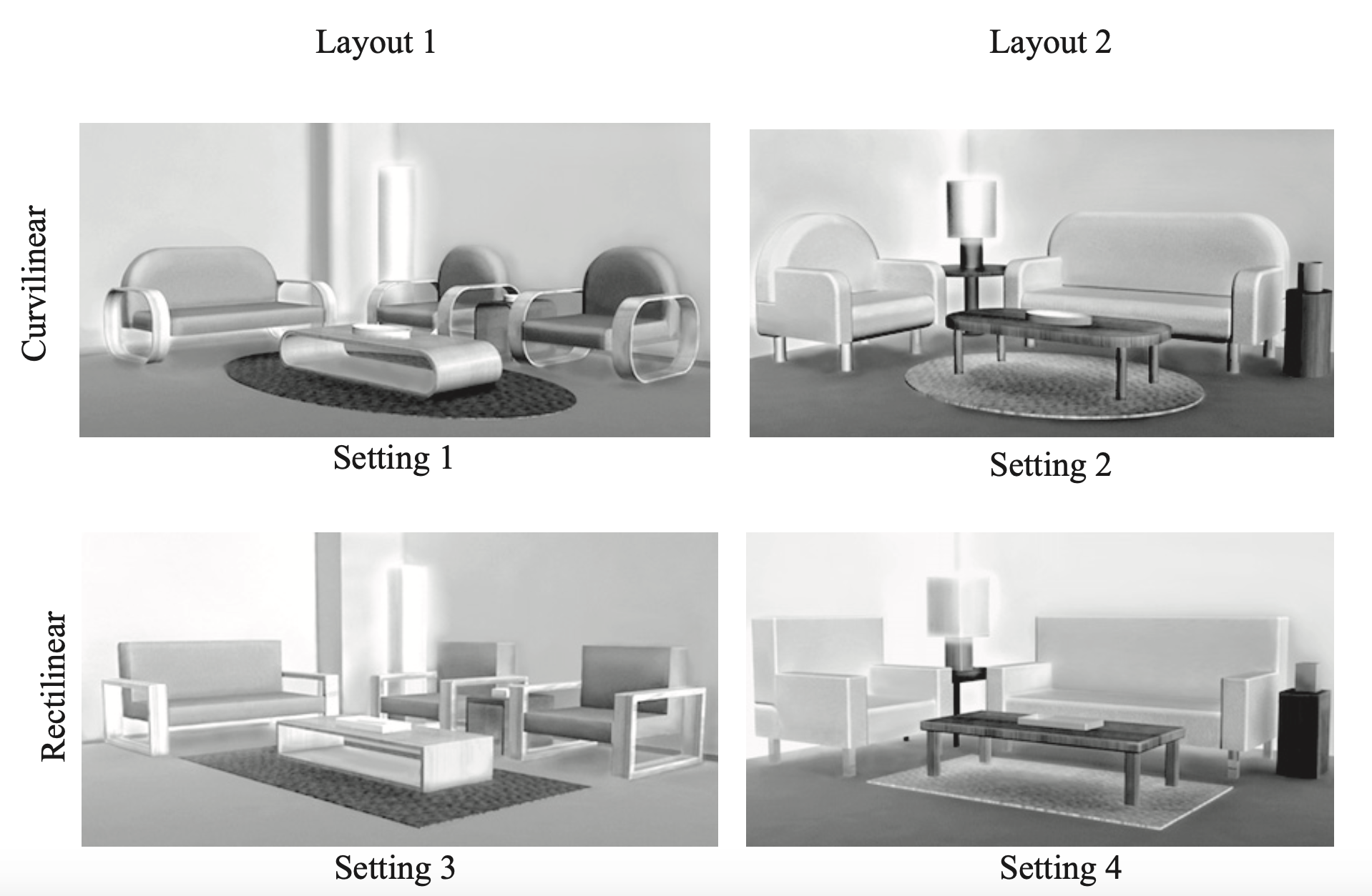 Image source. Examples of curved and straight-line furniture scenes.
